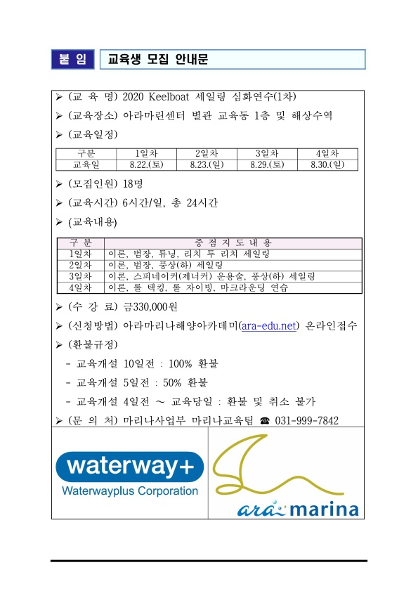 - 교 육 명 : 2020 킬보트(keelboat)세일링 심화반(1차)