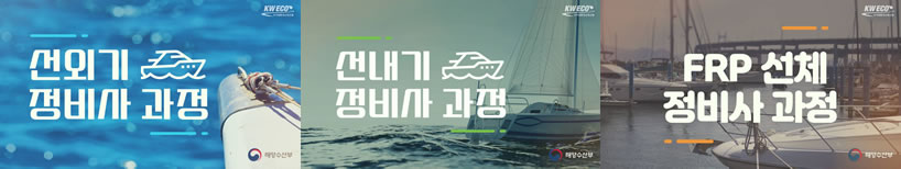마리나항만법 개정에 따라 마리나선박의 선외기, 선내기, FRP선체 정비를 위해 국가에서 지정한 전문인력 양성기관에서 온라인 교육을 수료하고, 검정시험에 합격한 사람에게 교육 이수증을 교부하는 교육 과정입니다.